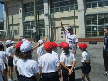 ヤクルト球団より、元選手の三輪さんが講師として来てくださり、投げ方教室を行いました。