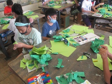 キャベツを画用紙を使って、自分の手で切りながら、一人ひとり違うキャベツを作っていました。