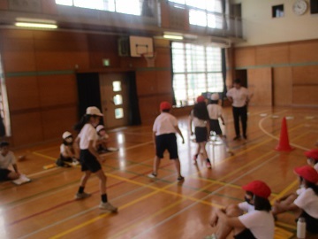 校庭と体育館に分かれ、それぞれの種目にチャレンジしました。