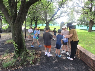 暑い中でしたが、子どもたちはしっかりと歩いて移動し、見学場所ではしっかりと話を聞いて、メモしていました。