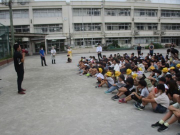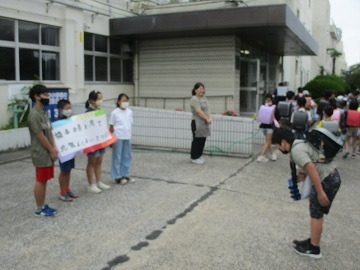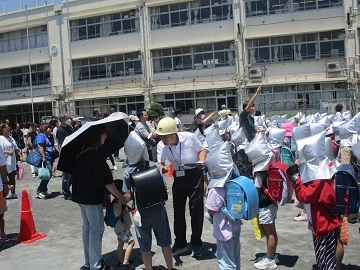 子どもたちもしっかりと放送を聞き、暑い中でしたが、しっかりと担任の先生の指示を聞きながら避難することができました。