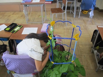 次に2つの育ちの違う植物から、何が違うのかをみんなで予想しました。
