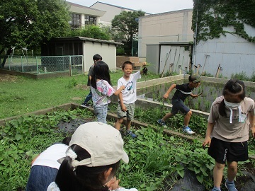 2年生は、校庭のつばさ総合高校側で野菜を育てています。