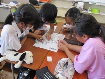 子どもたちは、ポイント狙いで積極的にサイコロを振り、グループで相談していました。