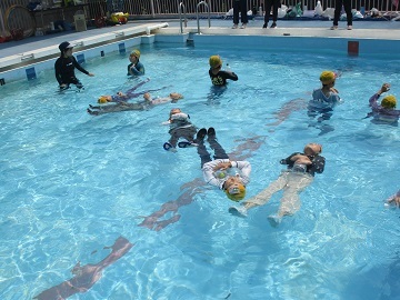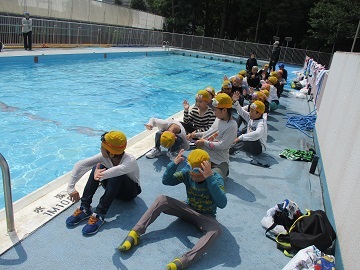 ペットボトルなど、浮くものにつかまって浮くことも体験し、いつものプールとは違う体験をたくさんしました。