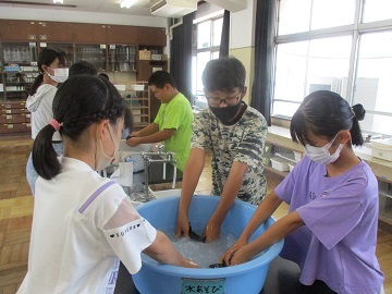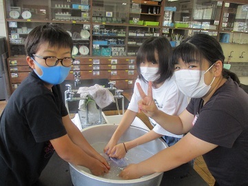 揉み洗いしているグループやこすり合わせて洗うグループなど様々でしたが、どのグループも水が黒くなるまできれいに洗えていました。