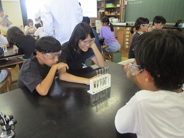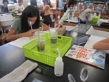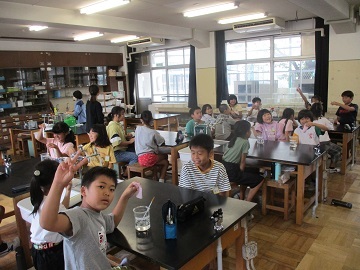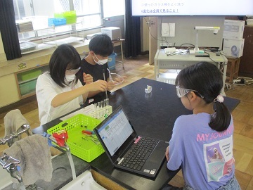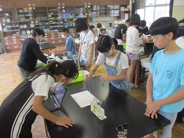 6年生の理科の授業で、液体について調べていました。