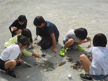 この後、今日の子どもたちの気付きなどから問題を作り、地層について学習を進めていく予定です。
