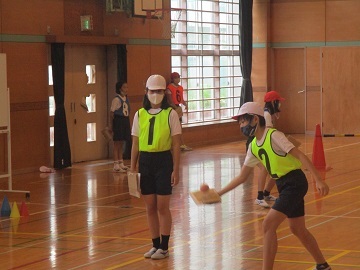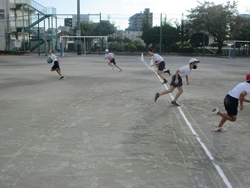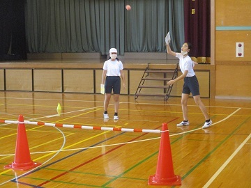 6年生の体育の授業で「テニピン」をしていました。
