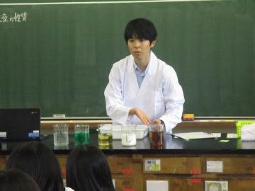担任から5つの液体が出され、それぞれの液体は何か考えました。