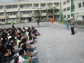 今日は、大田区から講師にきていただき、4年生が防災について学びました。
