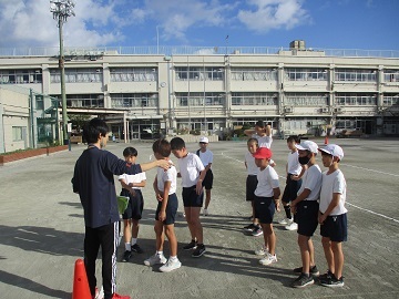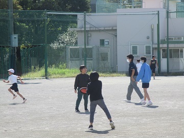 休み時間に校庭で子どもたちと一緒に遊んだり、3年生の体育でドッジボールに入ったりしました。