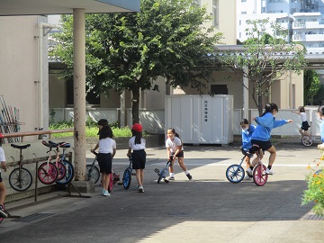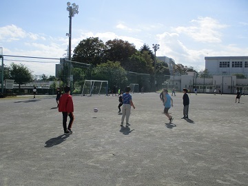 校庭では、サッカーやおにごっこ、一輪車などをして楽しく遊んでいます。