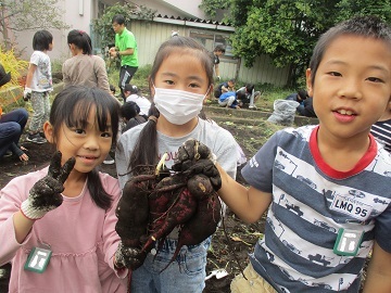 大きなサツマイモがたくさん収穫でき、たくさんの笑顔が見られました。