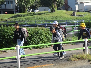 萩中小学校では、毎日登校班で集団登校をしています。