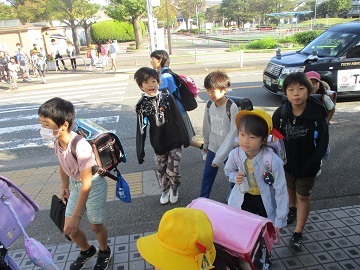 今日と明日は4年生が中心となり、集団登校を行います。