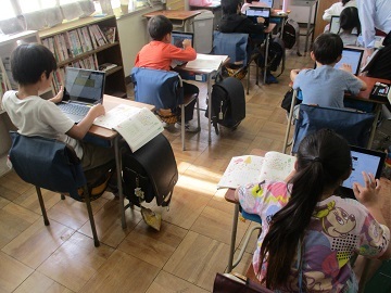 萩中小学校では、5、6年生が一緒に楽しく委員会で学校を良くするために活動しています。