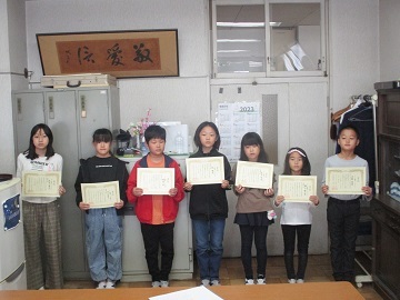 1年生から6年生までの受賞者が校長室で校長先生より賞状を渡していただきました。
