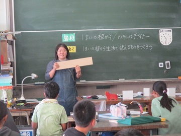 今日は、1枚の板から生活に役立つものを作ろうというテーマでした。
