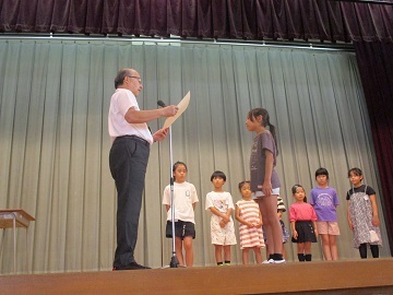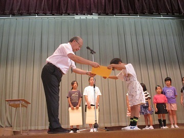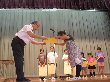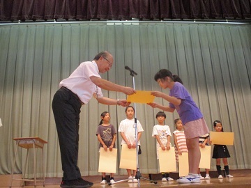 校長先生から賞を受賞した児童に1人1人表彰状が渡されました。