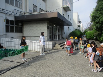 朝の出発式には、見送りにたくさんの保護者や先生方も参加しました。