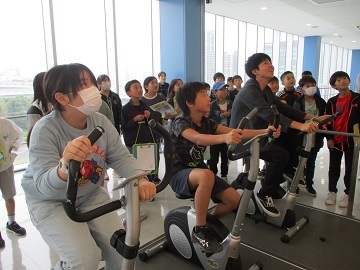 5年生は朝から元気に朝食を食べ、体操して体を動かしました。