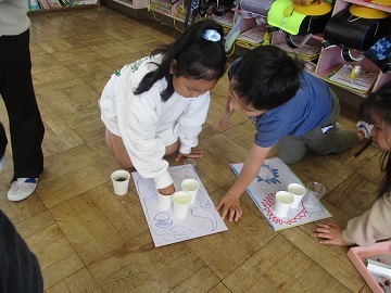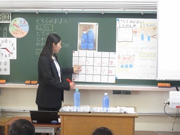 グループで協力しながら2つのペットボトルに入っている水の量を調べましたが、1年生はとても楽しそうに取り組んでいました。