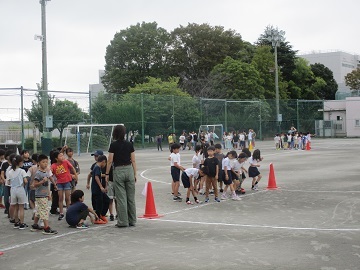 今年は、久しぶりに全校児童が校庭に集合して一緒に走ります。