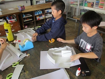 今日のテーマは、「大人の手を借りない」ということで、自分たちで助け合いながら作成しました。