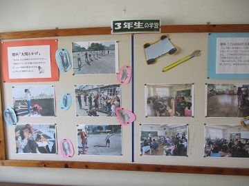 各階の階段の踊り場にある各学年の掲示板には、それぞれの学年の活動の様子が掲示されています。