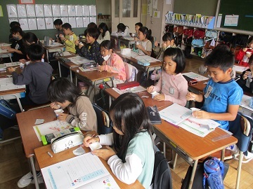 3階の廊下には、外国語活動を楽しんでいる5年生の声が響いていました。