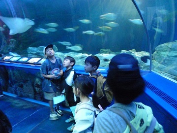 水族館では、他の学校や園のこどもたちがたくさんいて、とても混雑していましたが、しっかりと約束を守り、見学していました。