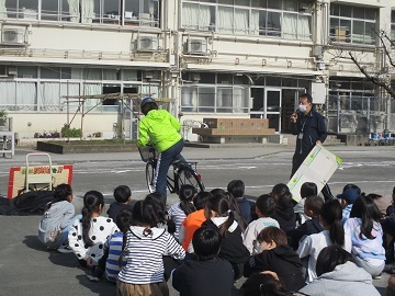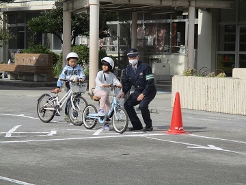 校庭で3年生対象に自転車教室が行われました。