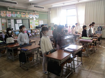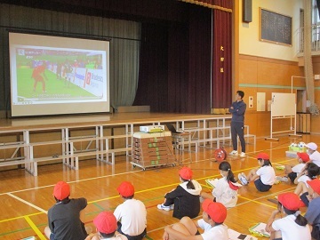 平川先生からは、これまで萩中小学校の児童とすごした思い出や元気な赤ちゃんを産んできますという話がありました。