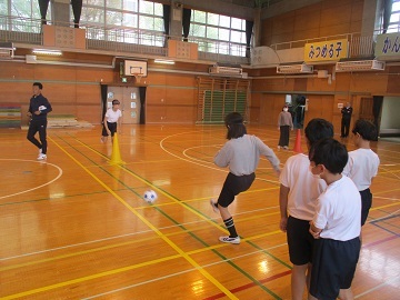 4年生が福祉学習の一環として、ブラインドサッカー体験をしました。