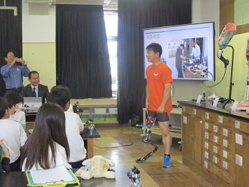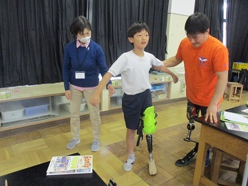 4年生が福祉学習の一環として、世田谷工業振興協会さんから講師の方に来ていただき、義肢装具体験を行いました。