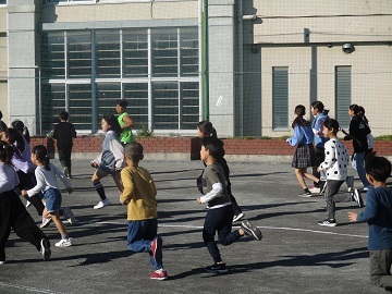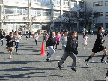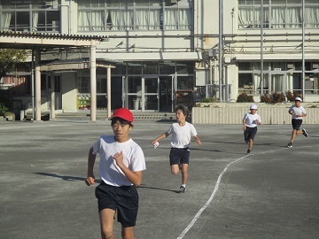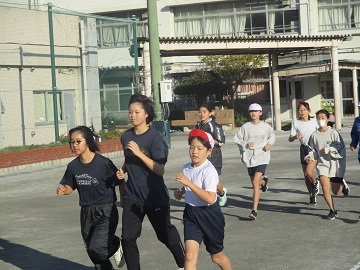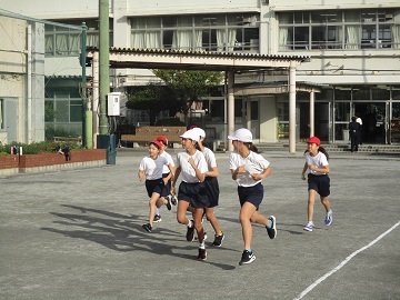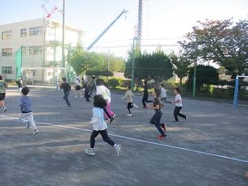 今日も朝から元気に全校児童が朝マラソンに取り組んでいます。
