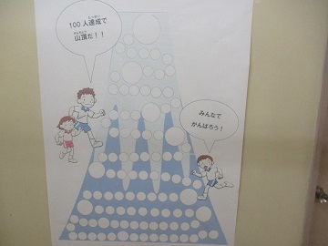 今日は早速1枚貼られていました。全校児童で協力して、シールを貼っていき、山頂を目指していきます。