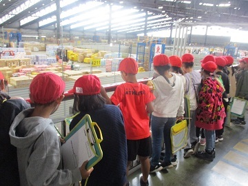 大田市場では、物流についてお話を聞いたり、実際の市場の様子を見たり、荷物を運ぶ車に乗ってみたりしました。