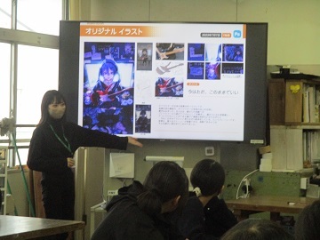 萩中小学校を卒業し、現在日本工学院でアニメーションについて学んでいる学生さんがいます。
