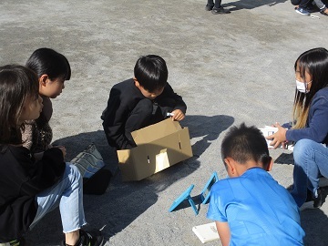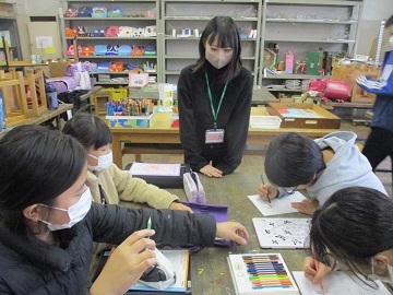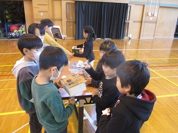今日は、クラブの時間に創作クラブに卒業生が来て、児童と一緒にクラブをしました。