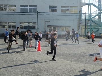 12月14日の大田区小学生駅伝大会に向けて、選手候補者の児童は練習を行っています。