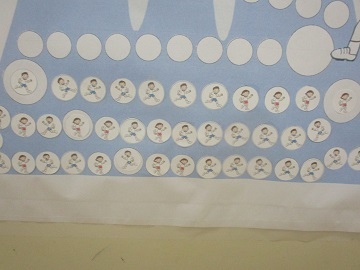 これは、1周走ると1マス色を塗るマラソンカードが埋まると1人1枚シールを貼っていくものです。