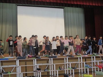 2年生が体育館でステップの練習をしていました。