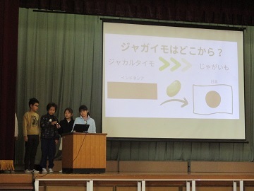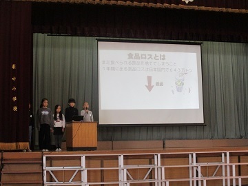 朝の時間に、ユニセフ集会が行われました。