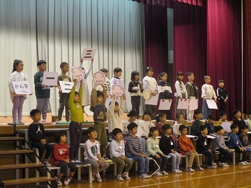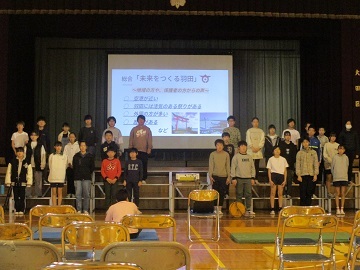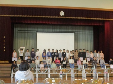 開校記念集会を通して、みんなで萩中小学校の誕生日をお祝いしました。