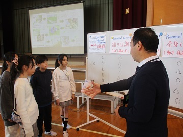 萩中小学校では、先生方も一緒に遊んでくれるのですが、今日はALTの先生も一緒にこどもたちと遊んでいました。