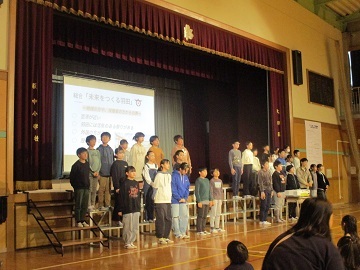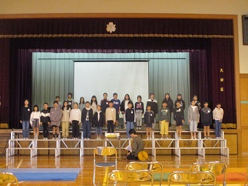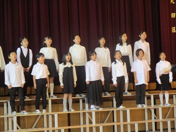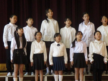 萩中小学校からは、合唱団が参加し、2曲を披露しました。