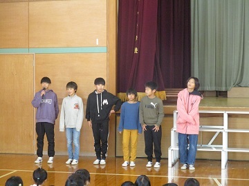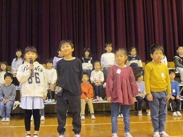 児童代表の2年生の児童が、2学期頑張ったことや3学期に頑張りたいことを発表しました。
