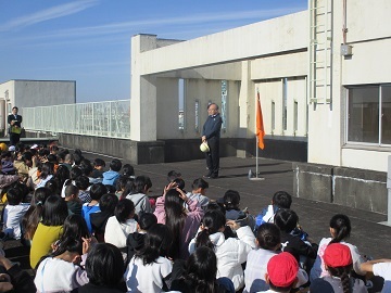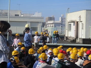 児童は放送をよく聞き、落ち着いて階段を使って、屋上まで避難しました。